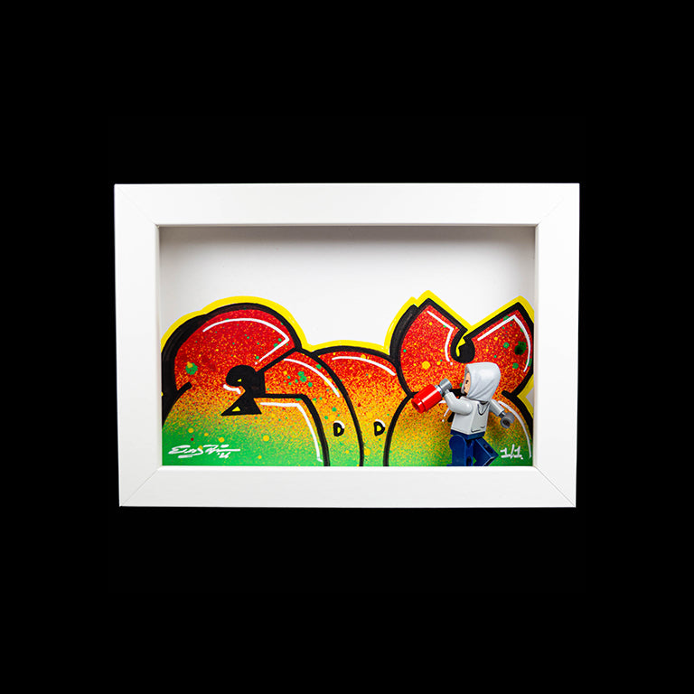 "The Box Edition concept, created in 2021, aims to integrate graffiti and "Danish Building Bricks" elements with traditional 2D artworks, making them more engaging and tangible. By adding multiple layers, the flat artwork becomes more interactive and sculptural, giving it a playful and dynamic feel. Despite these added dimensions, the pieces remain compact and easy to display. This approach offers a fresh way to experience and appreciate art, making it more accessible and enjoyable."