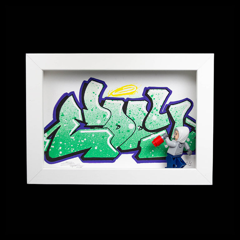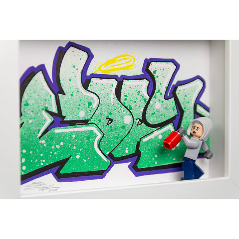 "The Box Edition concept, created in 2021, aims to integrate graffiti and "Danish Building Bricks" elements with traditional 2D artworks, making them more engaging and tangible. By adding multiple layers, the flat artwork becomes more interactive and sculptural, giving it a playful and dynamic feel. Despite these added dimensions, the pieces remain compact and easy to display. This approach offers a fresh way to experience and appreciate art, making it more accessible and enjoyable."