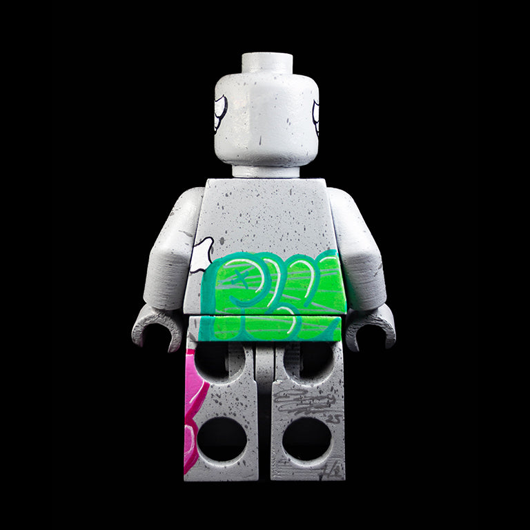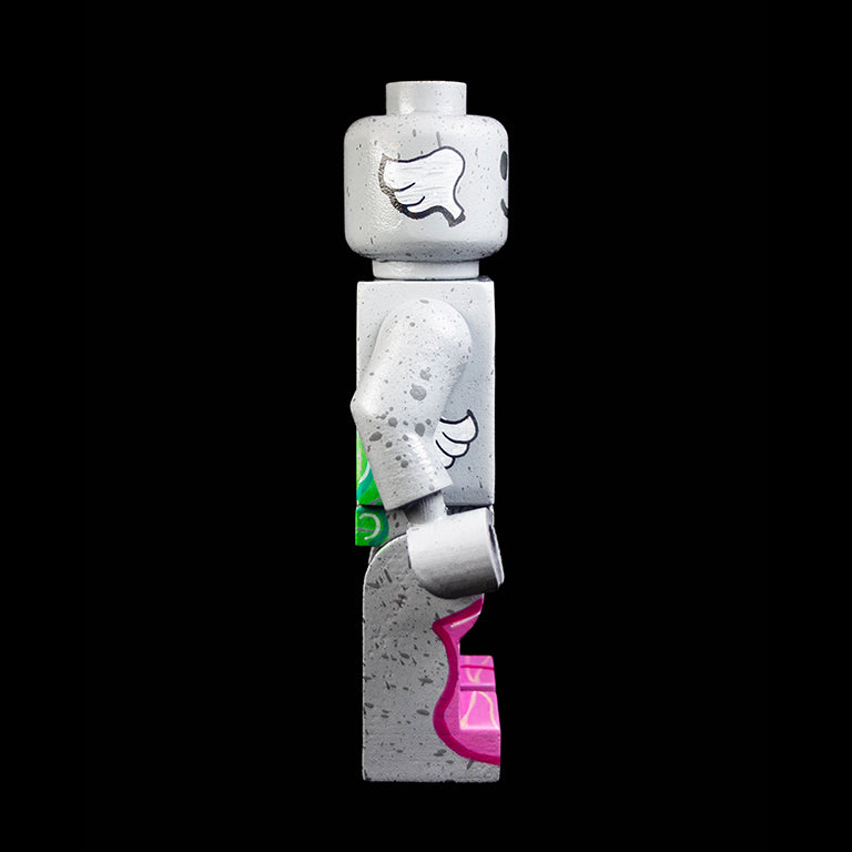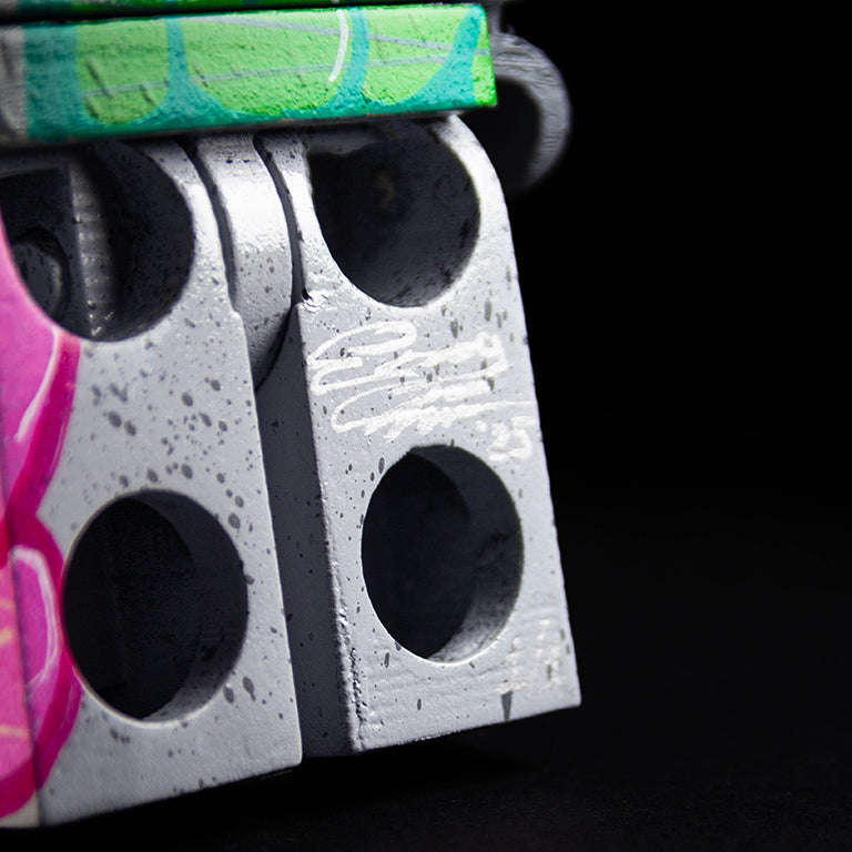 This unique artwork numbered 1/1 is designed and in-house manufactured by artist Eddy Plu. The Large "Danish Building Bricks". Figure measures around 17 cm in height and is completely hand-painted by using multiple layers of spray paint and acrylic paint applied on top of each other. Finished with a high gloss varnish.